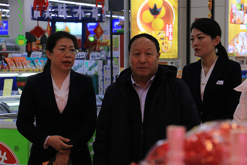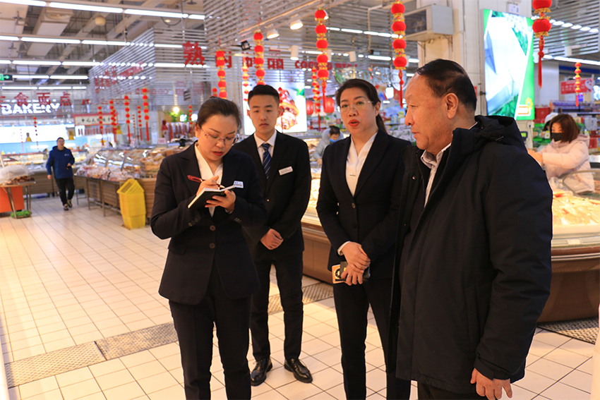 金威商貿集團董事長(cháng)石樹(shù)平、金威超市太西店總經(jīng)理李智華展開(kāi)衛生檢查