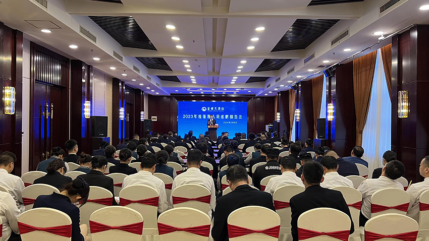 3月8日上午八點(diǎn),在酒店一號會(huì )議室組織召開(kāi)了“金威大酒店2023年度管理人員述職報告會(huì )”,領(lǐng)班以上全體管理人員、服務(wù)品牌員工、“金青班”學(xué)員,共計90余人參加了會(huì )議。會(huì )上,未參加集團公司集中述職會(huì )的10名中層管理人員上臺做了述職匯報,總經(jīng)理張勇做了總結講話(huà)并完成了民主評議。至此,大酒店2023年度的各項管理工作圓滿(mǎn)劃上了句號。