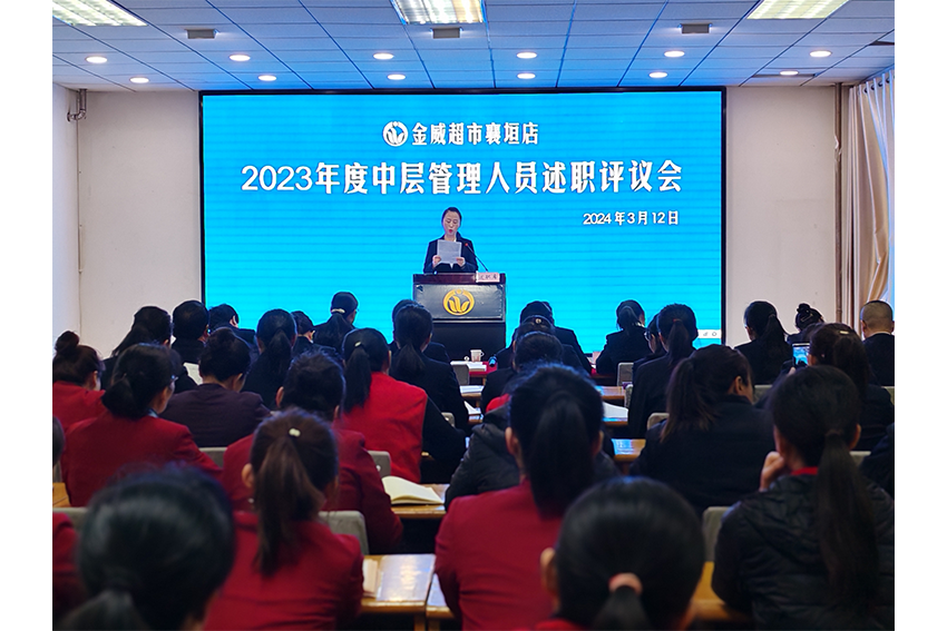 星光不負趕路人,江河眷顧奮楫者。為進(jìn)一步打造高素質(zhì)、專(zhuān)業(yè)化的管理團隊,全面、客觀(guān)、公正、準確地評定中層管理人員的履職擔責成果,3月12日上午,金威超市襄垣店在三樓會(huì )議室召開(kāi)了2023年度管理人員述職評議會(huì )。22名助理以上管理人員分享交流了一年來(lái)的工作經(jīng)驗和感悟,全體參會(huì )人員對中層以上管理人員進(jìn)行了線(xiàn)上民主評議,吳總做了精彩點(diǎn)評,并對近期工作提出要求,為2023年全面工作畫(huà)上了圓滿(mǎn)的句號。