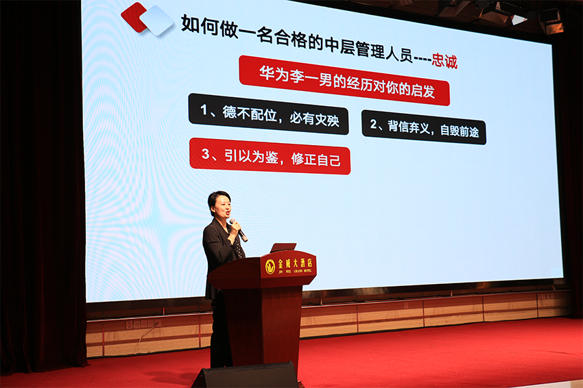張燕總經(jīng)理端莊優(yōu)雅知性魅力,思維開(kāi)闊口才一絕,她圍繞忠誠、能力、超越,將多年從事經(jīng)營(yíng)管理工作的切身感悟推心置腹,極盡分享。從中層的角色定位到實(shí)際工作中的管理認知、管理方法,張燕總經(jīng)理用獨特的認知、生動(dòng)的案例和富有激情的講解,耐心引領(lǐng)學(xué)員深入探索成為一名合格中層管理人員的奧秘和捷徑。