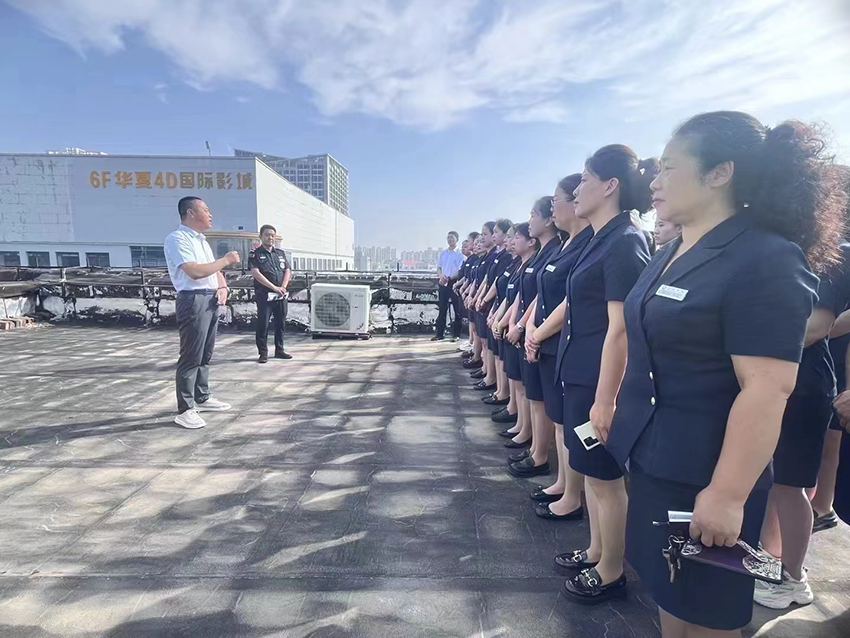 早上八點(diǎn)整,全體管理人員、服務(wù)品牌員工以及新入職一年內的員工們聚集在A(yíng)區樓頂,進(jìn)行消防器材實(shí)操演練。保衛部副經(jīng)理李波首先再次重申講解滅火器及消火栓的正確使用方法和操作要領(lǐng),確保人人都能準確掌握。隨后,管理人員、服務(wù)品牌員工及入職一年內的新員工分組進(jìn)行滅火器、消火栓實(shí)操演練,模擬初起火情現場(chǎng),學(xué)習如何快速、準確地使用滅火器進(jìn)行有效撲救,全體參加演練人員再一次深切地感受到,消防器材的正確使用在初起火情中起到的舉足輕重的作用。